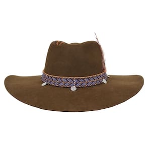 Um Chapéu da marca Pralana é feito de um feltro de alta qualidade, o que o torna durável. Ele apresenta uma aba de 10,5cm e copa de 11cm, característicos dos chapéus. A parte interna possui uma faixa de elástico, que ajuda a manter a cabeça no lugar. O chapéu também é decorado com uma bandinha customizada em material sintético, com detalhes presos, carta da marca e pena de ave, o que adiciona um toque elegante e sofisticado ao design rústico. Com sua combinação de estilo e funcionalidade, este chapéu é a escolha perfeita para cowboys e cowgirls que buscam uma peça clássica e atemporal para complementar seu visual country.