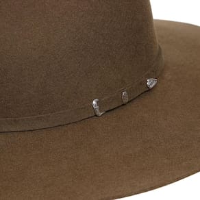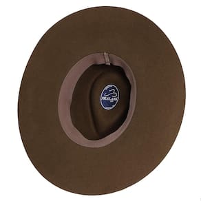 Chapéu Pralana modelo 5X Campo III fabricado em feltro na cor Marrom, possui copa de 10,5cm e aba de 10cm, bandinha de feltro com fivela e carneira de elástico.