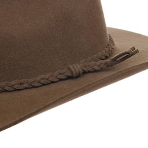 Chapéu Pralana modelo Violeiro fabricado em Feltro na cor Marrom, possui aba de 8cm de copa social de 11cm, bandinha de feltro trançada e carneira de elástico.