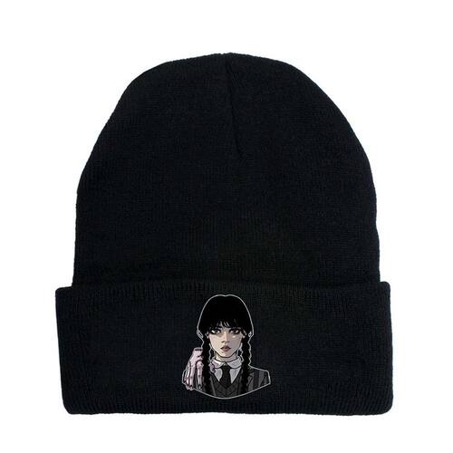 Chapéu de malha Wednesday Anime Winter Beanie de fibra acrílica