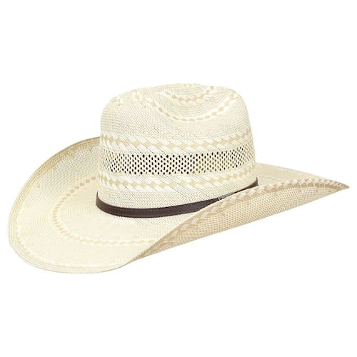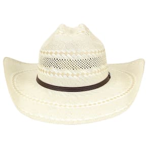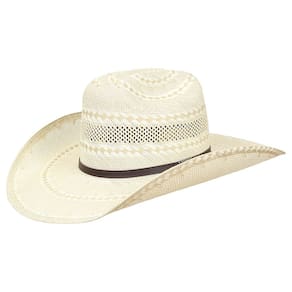 Chapéu Country modelo 20X da marca Stetson, fabricado em palha estilo shantung com aba de 11cm e copa de 12,5cm, carneira de material sintético que proporciona melhor firmeza e ajuste, a banda que envolve a copa é fabricada em couro costurado na cor marrom dando um toque discreto ao modelo.