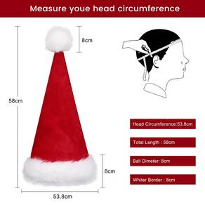 - Chapéu de Papai Noel para meninos ou meninas - O comprimento deste chapéu de Papai Noel infantil é de 22,8 polegadas/58 cm, e a circunferência da cabeça é de 21 polegadas/54 cm, adequado para a maioria dos adolescentes e crianças. Não é bom para cabeça grande.