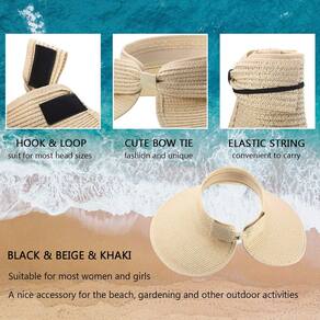 - Design elegante: esta viseira solar de palha tem lindo design de gravata borboleta na parte traseira, que é preso firmemente a uma corda elástica e pode ajudar a dar um toque lindo e atraente às suas roupas; O chapéu foi projetado com fita adesiva, para que você possa ajustar seu tamanho facilmente para caber melhor em sua cabeça, prático de usar