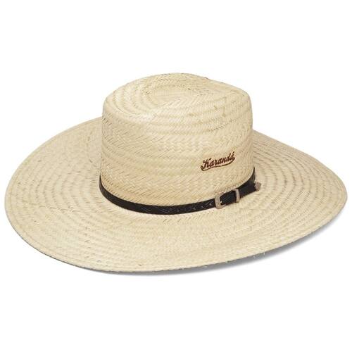 Desbrave o estilo autêntico com o Chapéu Karandá Colorado Extra III, uma fusão de tradição e contemporaneidade para os aventureiros de espírito livre. Uma peça clássica que proporciona uma experiência única de estilo e sofisticação no melhor estilo western.CARACTERÍSTICAS DO PRODUTOMaterial: Palha Dupla de CarnaúbaMaterial Interno: CouroDetalhe: Produzido artesanalmenteComplemento da Descrição: Bandinha em couro com fivela lateral, carimbo da marca na lateral esquerdaMEDIDAS APROXIMADASCopa: 11 cmAba: Larga de 13cmTamanho: Único ajustável, veste do número 54 ao 60 com confortoOBSERVAÇÃOOs produtos podem apresentar pequenas alterações na cor devido as configurações de cada monitor.Por ser feito à mão, pode apresentar pequenas variações na tonalidade e trama da palha, tornando cada chapéu exclusivo.DICAS DE CONSERVAÇÃOPara mantê-la limpa, passe um pano levemente umedecido em água e deixe-a secar à sombra. Produtos químicos mancham e alteram as cores do produto. Marca: Lajeados
