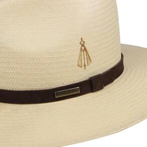 Chapéu Marcatto modelo Cavalgada fabricado em fibra de celulose na cor Natural, possui copa de 10,5cm e aba de 8cm, bandinha de material sintético com boton, detalhe da imagem de Nossa Senhora Aparecida gravado à laser na lateral e carneira de elástico.