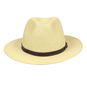 Chapéu Casual da marca Stetson, fabricado em palha com aba de 6,5cm e copa de 11,5cm, carneira de elastico que proporciona melhor conforto e ajuste, a banda que envolve a copa é fabricada em fita de debrum marrom dando um toque discreto ao modelo.
