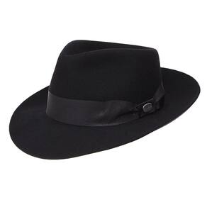 Chapéu Pralana modelo Alpaca 10X fabricado em feltro 100% Lã na Preto, possui copa de social forrada de 10cm e aba de 7cm, bandinha em fita de nylon com boton de metal e carneira em recouro.