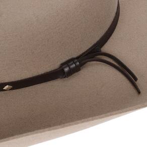Chapéu Pralana modelo Arizona III, fabricado em Feltro 100% Lã cor Bege, repelente a água, aba de 10cm e copa de 11cm, banda em couro sintético com detalhes em rebites e carneira de recouro.