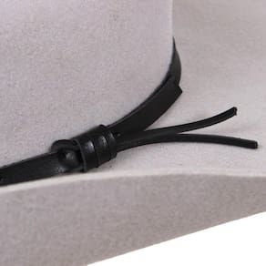 O Chapéu modelo Arizona III da Pralana é feito de um feltro de alta qualidade, o que o torna durável e resistente às intempéries. Com uma cor Gelo, ele apresenta uma aba larga de 9,5cm e topo quadrado de 11cm, característicos dos chapéus. A parte interna possui uma faixa de couro, que ajuda a manter a cabeça no lugar. O chapéu também é decorado com uma bandinha customizada em material sintetico marrom, com detalhes metálicos, o que adiciona um toque elegante e sofisticado ao design rústico. Com sua combinação de estilo e funcionalidade, este chapéu é a escolha perfeita para cowboys e cowgirls que buscam uma peça clássica e atemporal para complementar seu visual country.