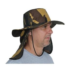 Cor camuflado militar Aba traseira para proteger o pescoço e nuca contra o sol e insetos Botões de pressão nas laterias para dobrar as abas se preferir. Alça de fixação para o queixo evita a queda do chapéu com vento forte Tamanho único, serve para todos os tamanhos de cabeça Marca: Shopdapesca Ean: 7806500225423