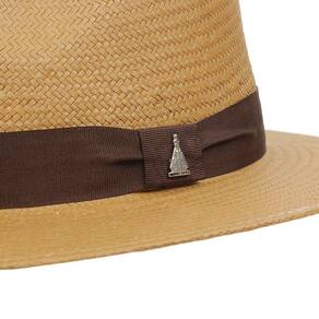 Chapéu Marcatto modelo Social fabricado em Fibra de Celulose na cor Palha, possui copa de 10cm e aba de 7cm, bandinha de fita de nylon com boton de Nossa Senhora Aparecida e carneira de elástico.