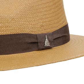 Chapéu Marcatto modelo Social fabricado em Fibra de Celulose na cor Palha, possui copa de 10cm e aba de 7cm, bandinha de fita de nylon com boton de Nossa Senhora Aparecida e carneira de elástico.