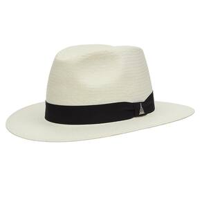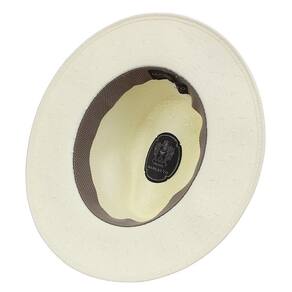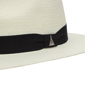 Chapéu Marcatto modelo Social fabricado em Fibra de Celulose na cor Marfim, possui copa de 10cm e aba de 6,5cm, bandinha de fita de nylon com boton de Nossa Senhora Aparecida e carneira de elástico.