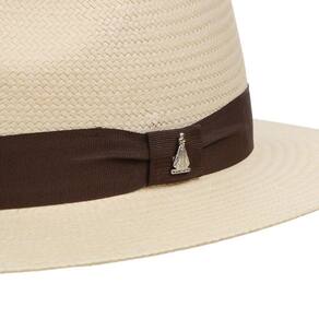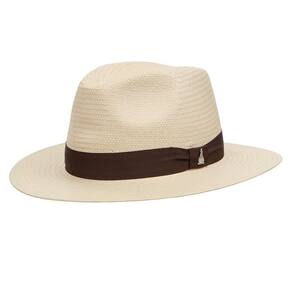 Chapéu Marcatto modelo Social fabricado em Fibra de Celulose na cor Natural, possui copa de 10cm e aba de 6,5cm, bandinha de fita de nylon com boton de Nossa Senhora Aparecida e carneira de elástico.
