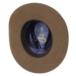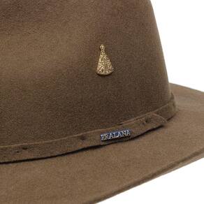 Chapéu Pralana modelo 5X Jubileu fabricado em Feltro na cor Marrom, possui aba de 8cm de copa social de 10cm, bandinha de feltron com boton de metal e carneira de elástico. Este modelo possui forro interno na copa com imagem de Nossa Senhora Aparecida em comemoração do Jubileu de 300 Anos e acompanha boton de metal com a imagem na lateral.