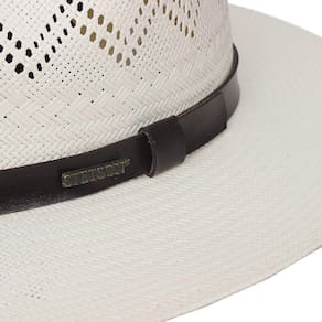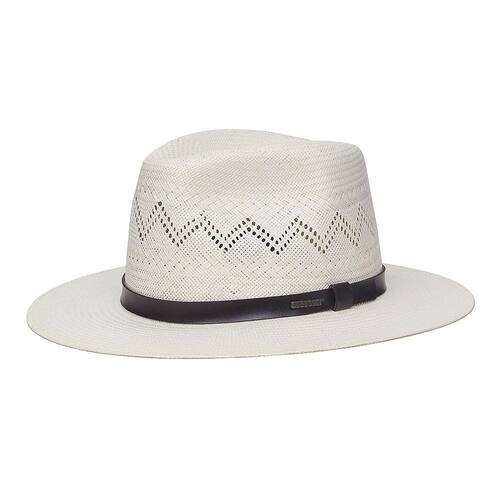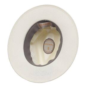 Chapéu na clássica qualidade Stetson modelo Social, fabricado em Fibra de Celulose na cor Marfim, possui aba de 6,5cm e copa de 11cm, bandinha de fita de material sintético com boton e carneira de elástico para melhor encaixe na cabeça.
