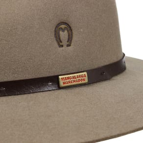 O Chapéu modelo Mangalarga Machador da Pralana é feito de um feltro de alta qualidade, o que o torna durável e resistente às intempéries. Com uma cor Taupe, ele apresenta uma aba de 7cm e topo de 11cm, característicos dos chapéus. A parte interna possui uma faixa de elástica, que ajuda a manter a cabeça no lugar. O chapéu também é decorado com uma bandinha customizada em material sintético marrom, com detalhe metálico na lateral, o que adiciona um toque elegante e sofisticado ao design rústico. Com sua combinação de estilo e funcionalidade, este chapéu é a escolha perfeita para cowboys e cowgirls que buscam uma peça clássica e atemporal para complementar seu visual country.