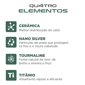 Titânio: acelera o processo de alisamento e reduz o frizz, mantendo a hidratação natural dos cabelos.