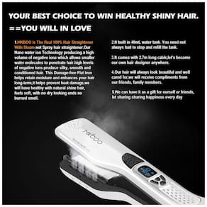 Segurança e Facilidade de Uso: O modelador desliga automaticamente após 60 minutos de inatividade, proporcionando maior segurança durante o uso. O cabo de alimentação com rotação de 360 graus facilita a utilização em diferentes ângulos, enquanto a tela LCD e o tanque de água removível de 40 mL simplificam o processo de alisamento.
