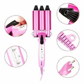 Trionda Profissional Kemei - Dourado - O ferro de ondulação de cabelo de 3 barris, fácil de operar, pode ajudá-lo a criar ondas S soltas, grandes e bonitas. - Elemento de aquecimento PTC, aquecimento rápido 30s. - A adoção da tecnologia cerâmica de turmalina, pode liberar grandes quantidades de íons negativos, reduzindo os danos ao cabelo, tornando seu cabelo mais saudável, natural e com a forma do cabelo mais duradoura. - Duas configurações de temperatura da engrenagem: 170C, 220C, atendem às suas diferentes necessidades de penteado. Marca: Bbg Ean: 7896182430185