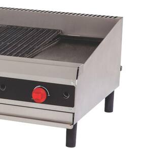 Sua estrutura é confeccionada em aço inoxidável, proporcionando mais durabilidade ao produto. Conta com uma área útil de 1m e grelhas fabricadas em ferro fundido para maior resistência, além de pedra cerâmica para melhor distribuição de calor. Possui um design com grelhas inclinadas, dessa forma a gordura proveniente do uso poderá escorrer facilmente para os reservatórios, evitando que sejam queimadas e contamine o sabor dos alimentos. Também acompanha uma chapa bifeteira, podendo substituir uma das grelhas.