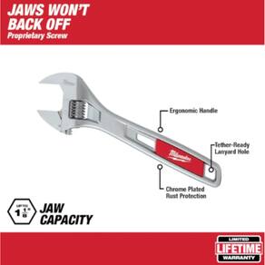 A chave ajustável foi projetada desde o início para oferecer produtividade máxima ao usuário profissional. A chave ajustável possui um parafuso de ajuste proprietário para mandíbulas que não recua. O formato ergonômico da alça foi projetado para máximo conforto e não vai cavar nas palmas, e é cromado para proteção contra ferrugem e máxima vida útil da ferramenta. O design da mandíbula paralela da chave não escorrega ou danifica as superfícies de acabamento, e um laço de alça pronto faz o Milwaukee 48 -22-7408 perfeito para os locais de trabalho mais difíceis. Características:- O parafuso de ajuste proprietário é ideal para mandíbulas que não recuam. - O design da mandíbula paralela evita o deslizamento e danos às superfícies de trabalho. - A chave ajustável Milwaukee de 08 polegadas é cromada para proteção contra ferrugem. - As engrenagens do parafuso de ajuste fornecem mudanças suaves.- A régua gravada a laser é facilmente visível para maior precisão. - A alça projetada ergonomicamente aumenta o conforto e reduz a fadiga do usuário durante o uso prolongado. - A alça pronta para amarração facilita o transporte.