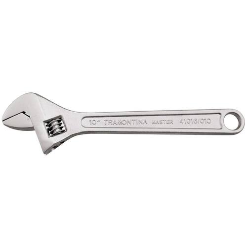 Sua caixa de ferramentas vai ficar ainda mais completa com a Chave Ajustável para Porcas 6 polegadas Tramontina com Corpo Forjado em Aço Carbono Cromado. Esse produto é super versátil e ajustável, perfeito para ser utilizado em porcas e parafusos de diferentes tamanhos! E o melhor de tudo, esse item foi forjado inteiramente em aço carbono cromado, para maior resistência durante o uso. Praticidade em seus afazeres, é com Tramontina! Orientações Acabamento cromado.O aço especial empregado na fabricação do produto, aliado à têmpera garantem maior resistência.A escala em milímetros, marcada a laser, no mordente do produto facilita o ajuste do tamanho do parafuso.Ferramenta muito versátil.As ferramentas são produzidas e testadas conforme normas específicas. Observações Use óculos, luvas e outros equipamentos de proteção de acordo com a tarefa a ser executada. Não golpeie as chaves, a não ser que sejam projetadas para este fim. Sempre utilize uma chave de bitola correta para cada parafuso ou porca para que não haja folga, pois isso danifica a chave e o parafuso. Mantenha a chave limpa para um melhor agarre, pois usá-la suja com graxa ou óleo pode causar acidentes. Não use tubos ou extensões para obter mais torque. Não altere a forma original das chaves. Armazene em local limpo e seco. Características Gerais EAN13 7891114068290 DUN14 17891114068297 NCM 8204.12.00 Peso Líquido 0,1400 kg. Peso Bruto 0,1400 kg. Metragem 0,000330 m³. Dimensões Embalagem (Compr. X Larg. X Alt.) 220x 75x 20 mm. Dimensões Produto (Compr. X Larg. X Alt.) 155x 45x 11 mm. Dimensão Extra A 45,0 mm. Dimensão Extra B 155,0 mm. Dimensão Extra C 19,5 mm. Dimensão Extra D 5,5 mm. Dimensão Extra E 11,0 mm.