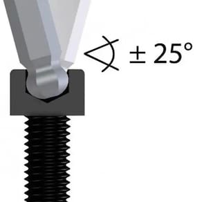 - Articula ângulo de +/- 25º em relação ao eixo do parafuso.