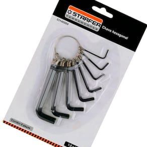 DESCRIÇÃO Utilizado para fixar ou soltar parafusos com sextavados internos. A Chave Allen Hexagonal Starfer 1,5 A 8mm Jogo com 08 Peças tem o formato em L que possibilita o efeito de alavanca durante o aperto ou desaperto de parafusos. Marca: Starfer DETALHES Fabricado em aço cromo vanádio, proporcionando resistência e durabilidade em aplicações mais severas. Acabamento fosfatizada/escurecida Possui argola para ser utilizado como chaveiro ESPECIFICAÇÕES Jogo de chaves allen possui 8 peças: 1,5mm 2mm 2,5mm 3mm 4mm 5mm 6mm 8mm CARACTERÍSTICAS Perfil do corpo em L, o que possibilita o efeito de alavanca durante o aperto ou desaperto de parafusos. Projetado para trabalhar com peças que tem cavidade interna hexagonalAS IMAGENS SÃO MERAMENTE ILUSTRATIVAS Ean: 7891638013240