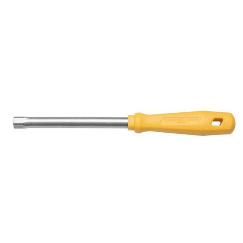 Haste em aço especial temperada. Acabamento cromado. Cabo injetado. As hastes das chaves de fenda são testadas em máquina de ensaio específica, para verificar o perfeito balanço entre resistência mecânica e dureza. Os dimensionais das pontas são verificados com gabaritos-padrão calibrados e certificados. Apertar ou afrouxar porcas e parafusos. Adequada para lugares de difícil acesso. As ferramentas são produzidas e testadas conforme normas específicas.