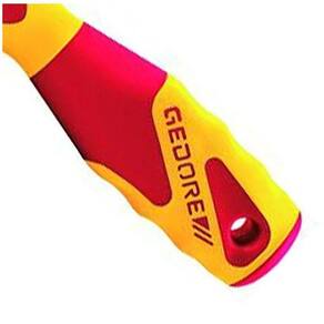 Características da Ferramenta: Aço especial e polímero anti-chamas, nas cores vermelho e amarelo, padrão gedore Haste com acabamento escurecido Com revestimento produzido por injeção, propiciando isolação até 1000 V, conforme norma EN 60900 / IEC 60900, Submetida à ensaio de: impacto, tensão elétrica, aderência, inflamabilidade e pressão/penetração Utilizar ferramentas isoladas VDE, em tensão máxima de 1000 V em corrente alternada e 1500 V em corrente contínua, Conforme norma EN 60900 / IEC 60900. Atende com segurança a norma regulamentadora NR 10 - Segurança em Instalações e Serviços em Eletricidade, possui certificado de isolação Empunhadura ergonômica em 3 componentes Power-Grip 3, que permite ao operador a execução do trabalho preciso e sem fadiga, Devido ao ajuste positivo da empunhadura e encaixe para transmissão de força adequada Profundidade interna: 25 mm. Chave com perfil de encaixe para parafuso com sextavado externo