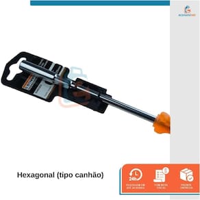 A Chave Soquete é ideal para afrouxar, apertar ou desapertar parafusos sextavados. Muito utilizado em parafusos autobrocantes, auxiliando em diversos tipos de serviços ou trabalhos. CARACTERÍSTICAS TÉCNICAS:Material: Aço cromo vanádio e polipropilenoMarca: Starfer MEDIDAS:1/2Medidas: 127mm - 1/2 encaixe x 245mm comprimento total x 125mm lâmina x 120mm cabo 1/4Medidas: 64mm - 1/4 encaixe x 230mm comprimento total x 125mm lâmina x 105mm cabo 3/8Medidas: 9,5mm - 3/8 encaixe x 230mm comprimento total x 125mm lâmina x 105mm cabo 3/16Medidas: 4,7mm - 3/16 encaixe x 225mm comprimento total x 125mm lâmina x 100mm cabo 5/16Medidas: 111mm - 7/16 encaixe x 240mm comprimento total x 125mm lâmina x 115mm cabo 7/16 Medidas: 111mm - 7/16 encaixe x 240mm comprimento total x 125mm lâmina x 115mm cabo 7/32Medidas: 56mm - 7/32 encaixe x 225mm comprimento total x 125mm lâmina x 100mm cabo 9/16Medidas: 143mm - 9/16 encaixe x 245mm comprimento total x 125mm lâmina x 120mm cabo