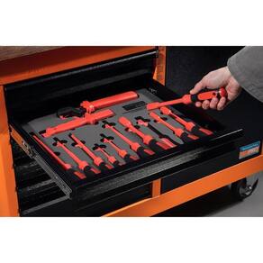Haste em aço cromo vanádio temperada. Ponta fosfatizada. Cabo com dupla injeção. Isolação elétrica de 1. 000 V CA. Produto em conformidade com a IEC 60900 e NR 10. Indicadas para trabalhos em baixa tensão até 1. 000 V em corrente alternada e 1. 500 V em corrente contínua. As ferramentas isoladas Tramontina PRO são submetidas a vários ensaios para atender às normas IEC 60900 e NR 10: ensaio de impacto, ensaio de resistência dielétrica, ensaio de aderência da isolação, ensaio de flamabilidade, ensaio de isolação elétrica. ampla variedade variada de ferramentas para aplicação segura em áreas energizadas com tensões de trabalho de até 1. 000V. Utilizada por profissionais que trabalham em áreas de risco (redes energizadas e instalações industriais). As ferramentas são produzidas e testadas de acordo com normas específicas. A IEC 60900 é uma norma internacional que especifica requisitos para a fabricação e aprovação de ferramentas isoladas. Equivalente a norma européia EN 60900. A NR 10 é uma norma regulamentadora brasileira que estabelece as condições mínimas para garantir a segurança de trabalhadores que interajam com instalações elétricas e serviços com eletricidade.