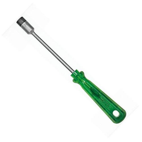 Haste em aço carbono. Soquete usinado em aço cromo vanádio. Acabamento cromado. Ponta fosfatizada. Cabo em PVC verde transparente. DIN 3125. Tamanho: 1/8 x 125. Apertar ou afrouxar porcas e parafusos em montagens mecânicas e eletrônicas. Adequada para lugares de difícil acesso.