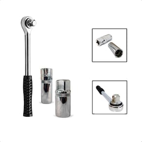 Especificações: - Marca: EDA; - Modelo: 0AT, 0AS e 3EX; - Material: Aço Cromo Vanádio nos Soquetes e Cabo Emborrachado na Catraca; - Catraca: Entrada 1/2 Reversível; - Quantidades: 45 Dentes; - Aplicação: Aperto e Desaperto; - Soquetes: 16mm Entrada de 1/2 e Soquete de 21mm Entrada de 1/2 Imantados Magnéticos.