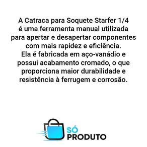 As imagens são meramente ilustrativas a catraca para soquete starfer 1/4 é uma ferramenta manual utilizada para apertar e desapertar componentes com mais rapidez e eficiência. Ela é fabricada em aço-vanádio e possui acabamento cromado, o que proporciona maior durabilidade e resistência à ferrugem e corrosão.