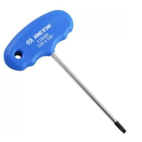 Descrição do Produto Chave com cabo T; Medida: T20; Haste fabricada em aço cromo-molibdênio-vanádio; Acabamento superficial cromado com ponta preta; Cabo com projeto ergonômico avançado, que proporciona maior firmeza e torque na hora do aperto. Marca: KING TONY