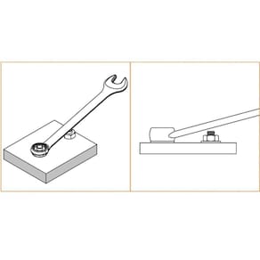 Use a chave perpendicular ao eixo do paraf e/ou porca. Isto aumenta a vida útil da ferramenta e torna a operação mais segura.