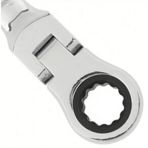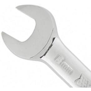 A chave é feita de aço inoxidável 40 CrV. O Níquel-cromo é um revestimento resistente à corrosão. A dureza do material do mecanismo de roquete 58 HRC. A catraca possui 12 lados, o que aumenta a área de contacto entre as superfícies de trabalho e reduz o risco de deformação das bordas do parafuso durante a instalação. É equipado com catraca especial catraca de 72 dentes, o que garante o funcionamento suave, fácil e rápida instalação de conexões de rosca. O ângulo de rotação da chave mínimo de 5 graus. A chave combinada catraca é utilizada para apertar ou soltar parafusos.