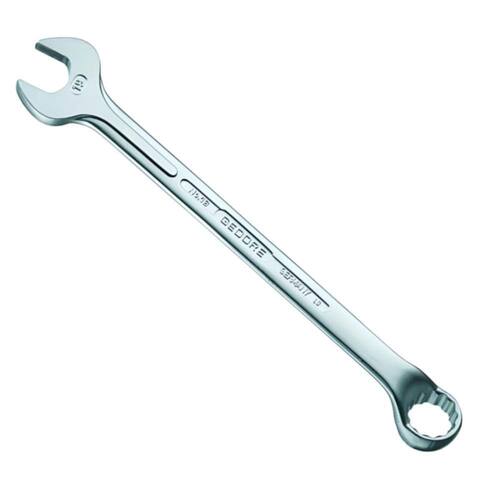 Aço Gedore-Vanadium. Acabamento niquelado e cromado. Chave combinada com um lado boca e outro Unit Drive com as mesmas medidas. A Unit Drive proporciona uma distribuição uniforme da força aplicada na parte central do sextavado, não havendo deformação dos cantos das porcas e parafusos. Inclinação em relação ao corpo: boca 15 e Unit Drive 10. Parede fina. Chave combinada bitolas: 1/4 à 1.1/4, são encarteladas para autoserviço.