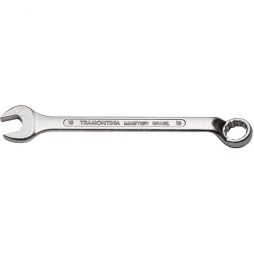 Realizar o aperto ou a soltura de porcas e parafusos ficou ainda mais simples com a Chave Combinada 9 mm com Pescoço Tramontina Master com Corpo Forjado em Aço Especial Cromado. Com corpo robusto e acabamento cromado, ela garante alta resistência e durabilidade, além de um encaixe preciso que facilita o manuseio. Ideal para quem busca eficiência nas tarefas do dia a dia. Consertos e reformas são mais fáceis com a qualidade Tramontina!