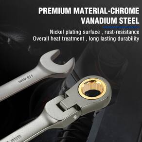 WORKPRO Chave combinada de catraca de cabeça flexível de 19 mm, construção Cr-V, revestimento de níquel, 72 dentes, design de 12 pontos, métrico - Resistente e duradoura: nossas chaves inglesas são feitas de liga Cr-V tratada termicamente de alta qualidade e niqueladas para maior durabilidade. A rotação flexível é conveniente para operação em pequenos espaços e operação sem esforço - Facilita o trabalho: a catraca de 72 dentes garante que o arco de giro de cinco graus funcione, permitindo uma operação fácil e rápida - A chave tem cerca de 24,4 cm de comprimento. A extremidade da caixa de catraca universal cabe em quatro, seis, 12 pontos, estrias, torx externo e até mesmo fixadores arredondados - Perfeito para trabalhar em espaços apertados: a cabeça da extremidade da caixa é usinada com precisão para encaixar firmemente nos fixadores. Também pode ser girado 180 graus para acessar espaços apertados - Ampla aplicação: adequado para fixar ou afrouxar porcas e parafusos em espaços estreitos. Aplicável a projetos domésticos, trabalhos de garagem, reparos de automóveis, serviços de caminhão, encanamento, construções, máquinas e muito mais