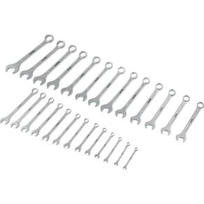 Marca: VonderConteúdo da embalagem:1 Jogo de chaves combinadass, composto por um suporte plástico com 26 peças, sendo: 6 mm, 7 mm, 8 mm, 9 mm, 10 mm, 11 mm, 12 mm, 13 mm, 14 mm, 15 mm, 16 mm, 17 mm, 18 mm, 19 mm, 20 mm, 21 mm, 22 mm, 23 mm, 24 mm, 25 mm, 26 mm, 27 mm, 28 mm, 29 mm, 30 mm e 32 mm.Destaques e diferenciais:Possui acabamento cromado fosco, proporcionando maior resistência contra oxidação/corrosão. Combina na mesma chave um lado fixa e outro estrela, possibilitando aplicações em locais de difícil acesso.Aplicações e dicas de uso:Indicado para apertar e soltar porcas e parafusos sextavados. Nunca utilizar prolongadores sobre as chaves, pois isso aumentará o torque aplicado e diminuirá a vida útil das ferramentas. Uso industrial.Detalhes TécnicosMaterial : Aço cromo vanádio Acabamento: Cromado fosco Quantidade de peças: 26 peças Capacidade: 6 mm a 32 mm Norma DIN: DIN 3113 Massa aproximada peso kg : 4.71 - E CDC : legal: 90 dias