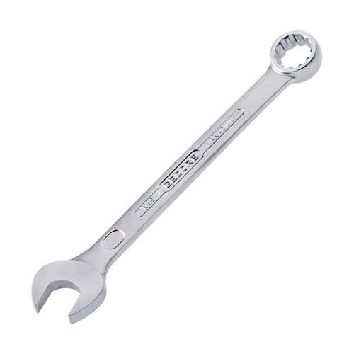Produto com acabamento niquelado e cromado. Chave combinada com um lado boca e outro Unit Drive com as mesmas medidas. A Unit Drive proporciona uma distribuição uniforme da força aplicada na parte central do sextavado, não havendo deformação dos cantos das porcas e parafusos.