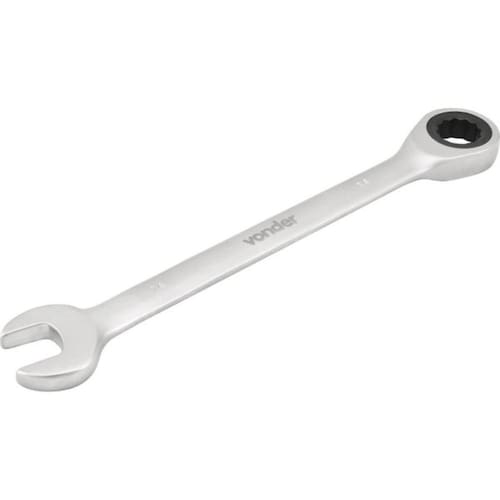 Indicada para apertar e soltar porcas e parafusos sextavados. Nunca utilizar prolongadores sobre a chave, pois isso aumentará o torque aplicado e diminuirá a vida útil da ferramenta. Não utilizar o lado com catraca para o aperto final. Produzida em aço cromo vanádio, proporcionando maior resistência e durabilidade. Conta com acabamento cromado fosco que oferece ótimo acabamento e maior proteção contra oxidação/corrosão. Possui sistema de catraca que permite a realização de trabalhos com mais agilidade e facilidade em locais de difícil acesso, sem a necessidade de retirar a chave para novo movimento. Características do produto: - marca: vonder - material do corpo da chave: aço cromo vanádio - acabamento da chave: cromado fosco - tipo de catraca da chave combinada: simples - garantia - e cdc : garantia legal: 90 dias dimensões - comprimento aproximado da chave: 165,0 mm - medida da chave combinada: 11 mmimagens meramente ilustrativas, os objetos que ambientam as imagens não acompanham o produto