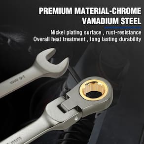 WORKPRO Chave combinada de catraca de cabeça flexível de 14 mm, 72 dentes, construção Cr-V, revestimento de níquel - A chave tem cerca de 19 cm de comprimento. A catraca de 72 dentes garante que cinco graus de arco de balanço funcionem, permitindo uma operação fácil e rápida - A extremidade da caixa de catraca universal cabe em quatro, seis, 12 pontos, estrias, torx externo e até mesmo fixadores arredondados - A cabeça da extremidade da caixa é usinada com precisão para encaixar firmemente nos fixadores. Também pode ser girado 180 graus para acessar espaços apertados - Nossas chaves são feitas de liga Cr-V tratada termicamente de alta qualidade e niqueladas para maior durabilidade. A rotação flexível é conveniente para operação em pequenos espaços e operação sem esforço - Ampla aplicação: adequado para fixar ou afrouxar porcas e parafusos em espaços estreitos. Aplicável a projetos domésticos, trabalhos de garagem, reparos de automóveis, serviços de caminhão, encanamento, construções, máquinas e muito mais