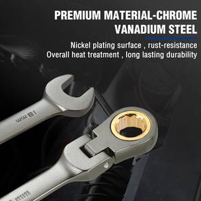 WORKPRO Chave combinada de catraca de cabeça flexível de 18 mm, construção Cr-V, revestimento de níquel, 72 dentes, design de 12 pontos, métrico - Resistente e duradoura: nossas chaves inglesas são feitas de liga Cr-V tratada termicamente de alta qualidade e niqueladas para maior durabilidade. A rotação flexível é conveniente para operação em pequenos espaços e operação sem esforço - Facilita o trabalho: a catraca de 72 dentes garante que o arco de giro de cinco graus funcione, permitindo uma operação fácil e rápida - A chave tem cerca de 23,4 cm de comprimento. A extremidade da caixa de catraca universal cabe em quatro, seis, 12 pontos, estrias, torx externo e até mesmo fixadores arredondados - Perfeito para trabalhar em espaços apertados: a cabeça da extremidade da caixa é usinada com precisão para encaixar firmemente nos fixadores. Também pode ser girado 180 graus para acessar espaços apertados - Ampla aplicação: adequado para fixar ou afrouxar porcas e parafusos em espaços estreitos. Aplicável a projetos domésticos, trabalhos de garagem, reparos de automóveis, serviços de caminhão, encanamento, construções, máquinas e muito mais
