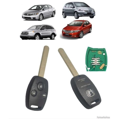 Chave Completa Ignição Contato Hon Civic Fit City Crv 3 Botões Sem Panico Frequencia 313.8 Mhz Id46 FCC ID:HLIK-1T Chave Completa Ignição Hon 2 Botões sem Panico