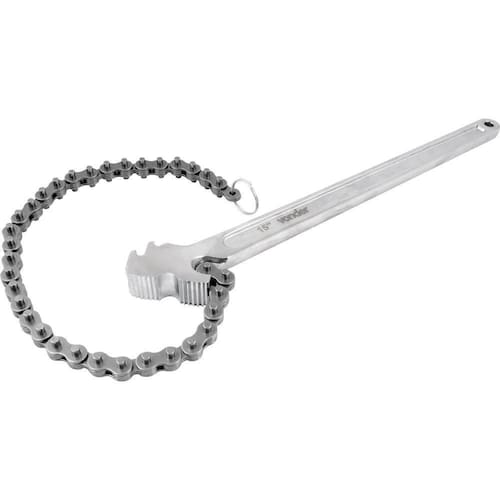 Dimensões: Largura do mordente: 20,5 mm / Comprimento do corpo: 375 mm / Largura do cabo: 23 mm / Comprimento da corrente: 490 mm