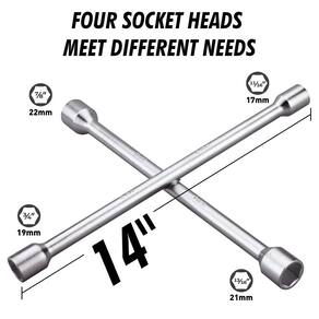 Durabilidade: Feito de aço carbono forjado tratado termicamente Resistente à corrosão: cromado Comprimento do corpo de 35,5 cm para facilitar a alavancagem. Quatro cabeças de soquete se encaixam nos tamanhos SAE e porcas métricas mais comuns. Tamanhos incluídos: 11/40.6 cm, 3/10.2 cm, 13/40.6 cm, 7/20.3 cm; (17 mm, 19 mm, 21 mm, 22 mm) - Durabilidade: Feito de aço carbono forjado tratado termicamente - Resistente à corrosão: chave de pneu cromada - Comprimento do corpo de 35,5 cm para facilitar a alavancagem - Quatro cabeças de soquete se encaixam nos tamanhos SAE e porcas métricas mais comuns - Tamanhos incluídos: 11/40.6 cm, 3/10.2 cm, 13/40.6 cm, 7/20.3 cm; (17 mm, 19 mm, 21 mm, 22 mm)